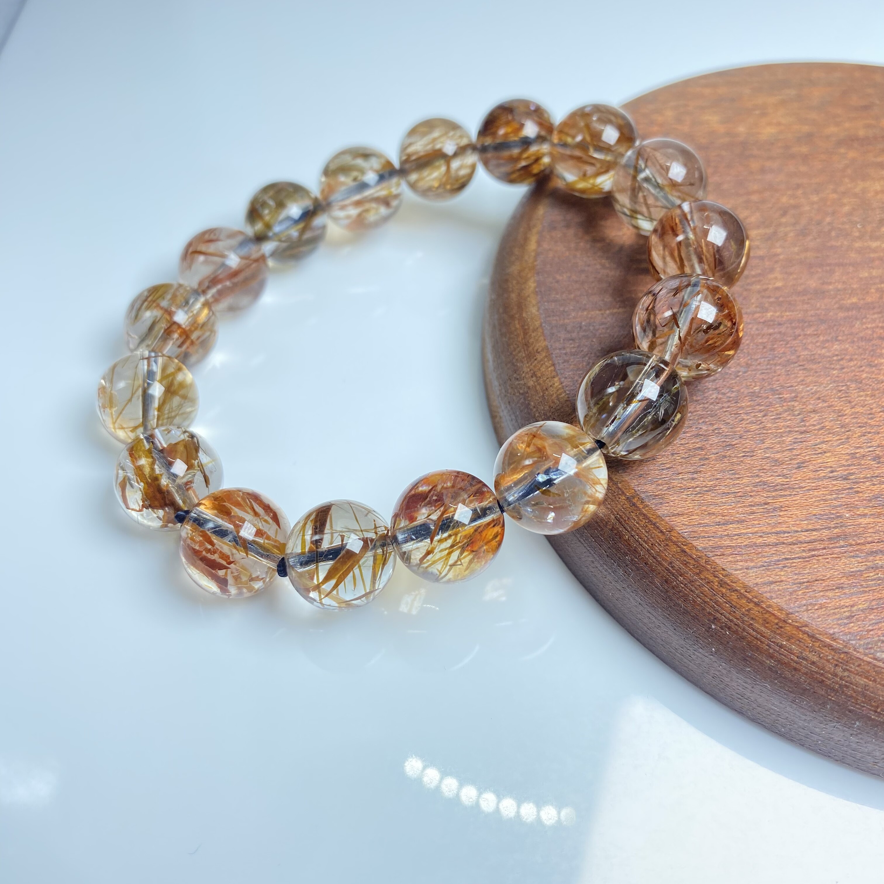 天然巴西黑金超七发晶单圈顺发手链水晶手串碧玺和田玉海纹石南红