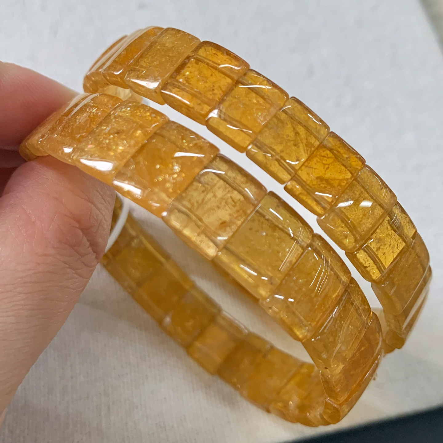 天然巴西黄碧玺手排金丝雀色莹润饰品手串礼物水晶手链情侣男女生
