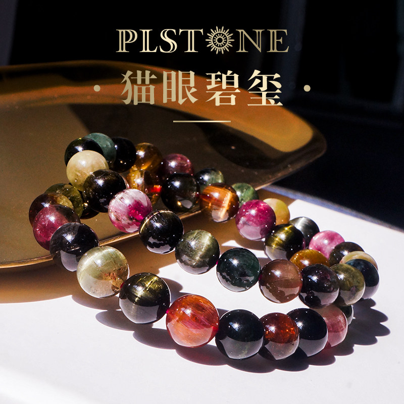 PLSTONE普琳丝天然水晶巴西彩猫眼碧玺手链女【佛系回货系列】