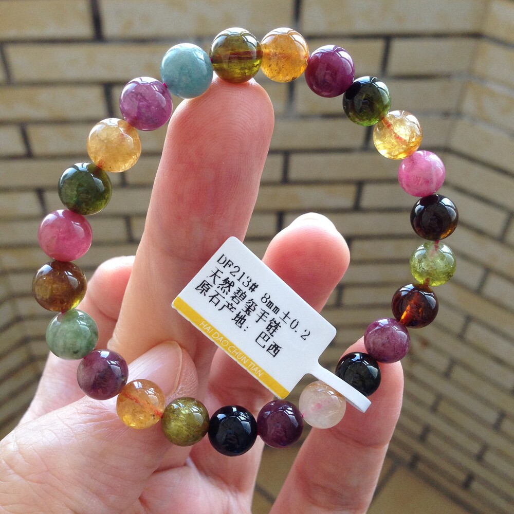 天然巴西老矿彩虹碧玺单圈手串糖果色水晶手链水晶饰品情侣款男女