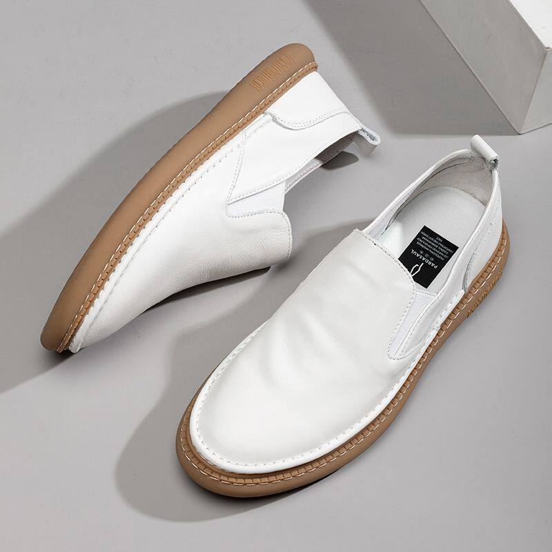 高档小白白鞋一脚蹬鞋英伦潮男流色皮士休闲鞋豆豆鞋乐福鞋懒人社