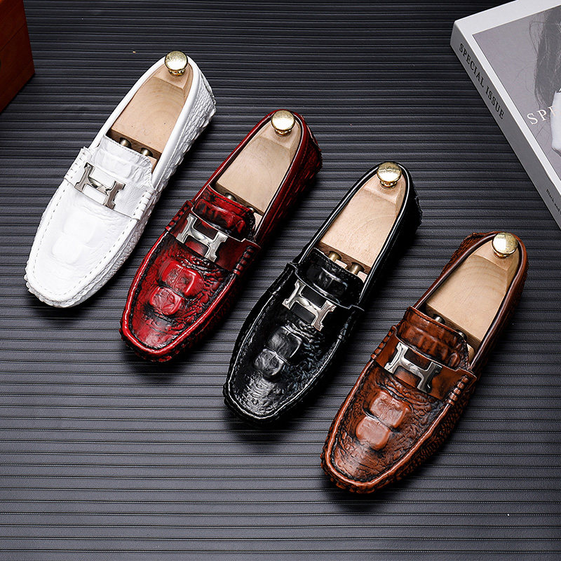 高端豆豆鞋男真皮2026夏季潮流英伦风软底鳄鱼纹潮男懒人休闲皮鞋