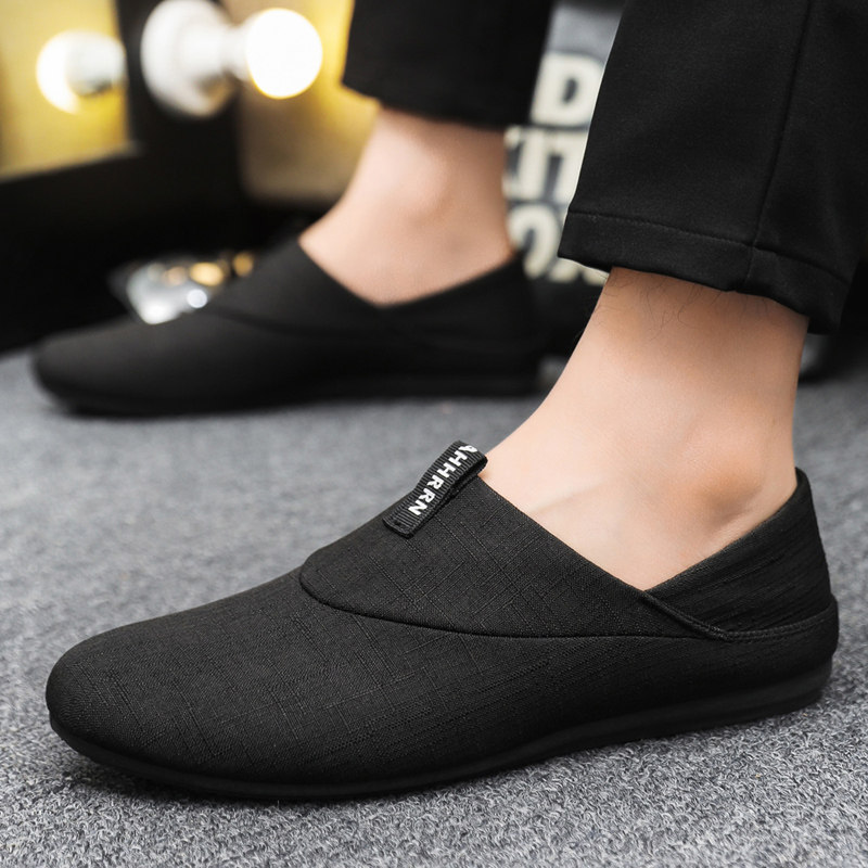 帆布男鞋秋季新款透气老北京黑色布鞋懒人一脚蹬开车软底豆豆潮鞋