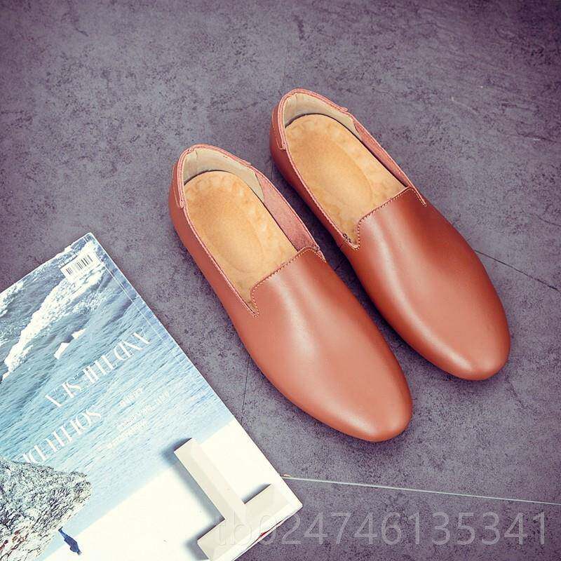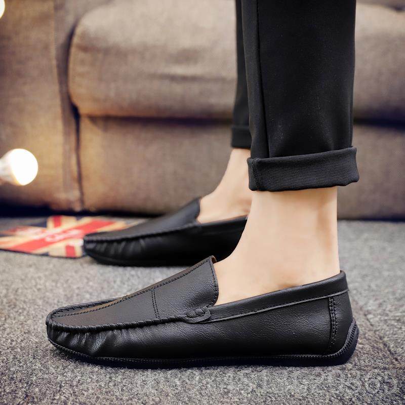 英伦风小皮鞋男软底舒适上班套脚一脚蹬手工懒人乐福鞋潮男豆豆鞋