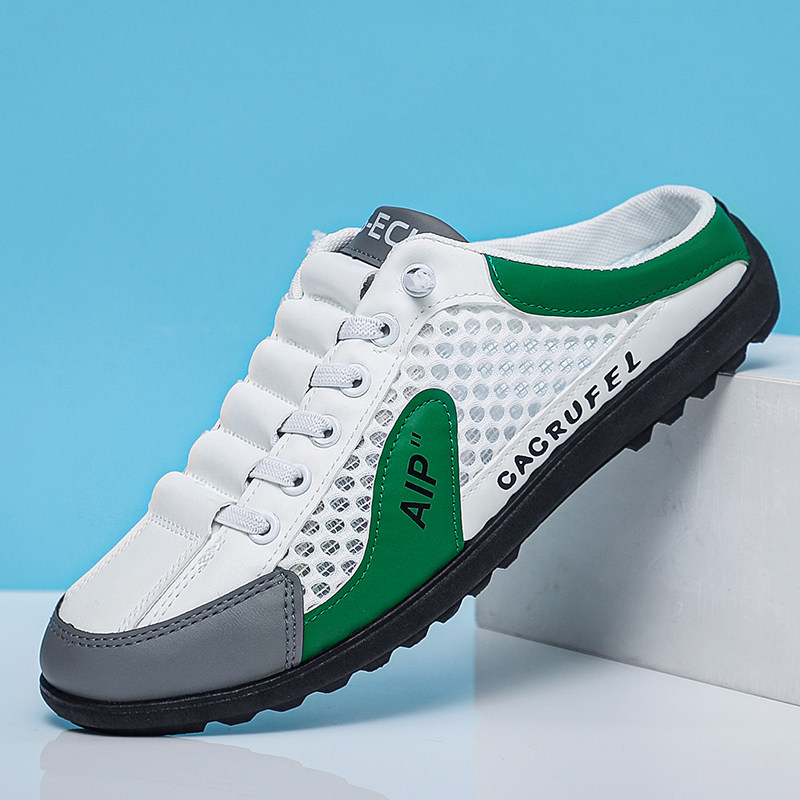 夏天薄款没有脚后跟网面鞋子男懒人一脚蹬半托豆豆鞋无后跟半拖鞋