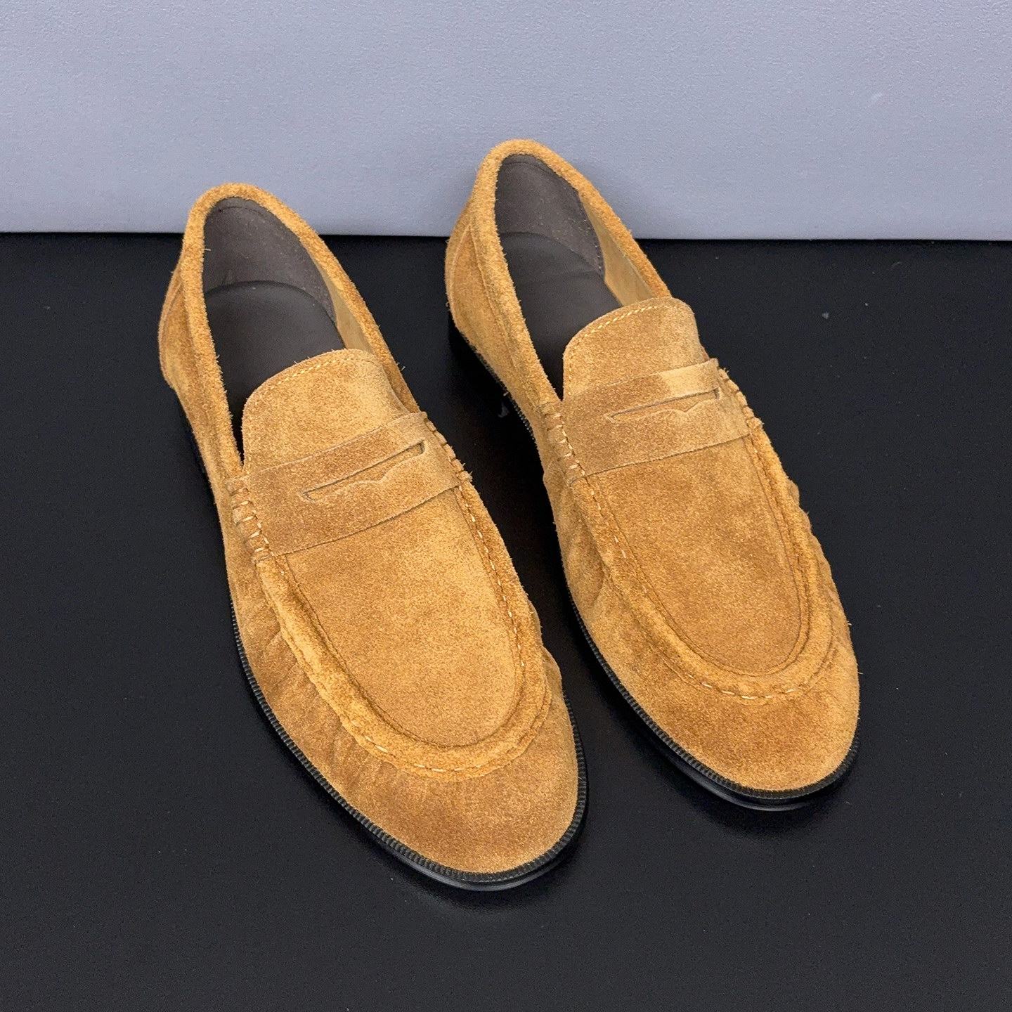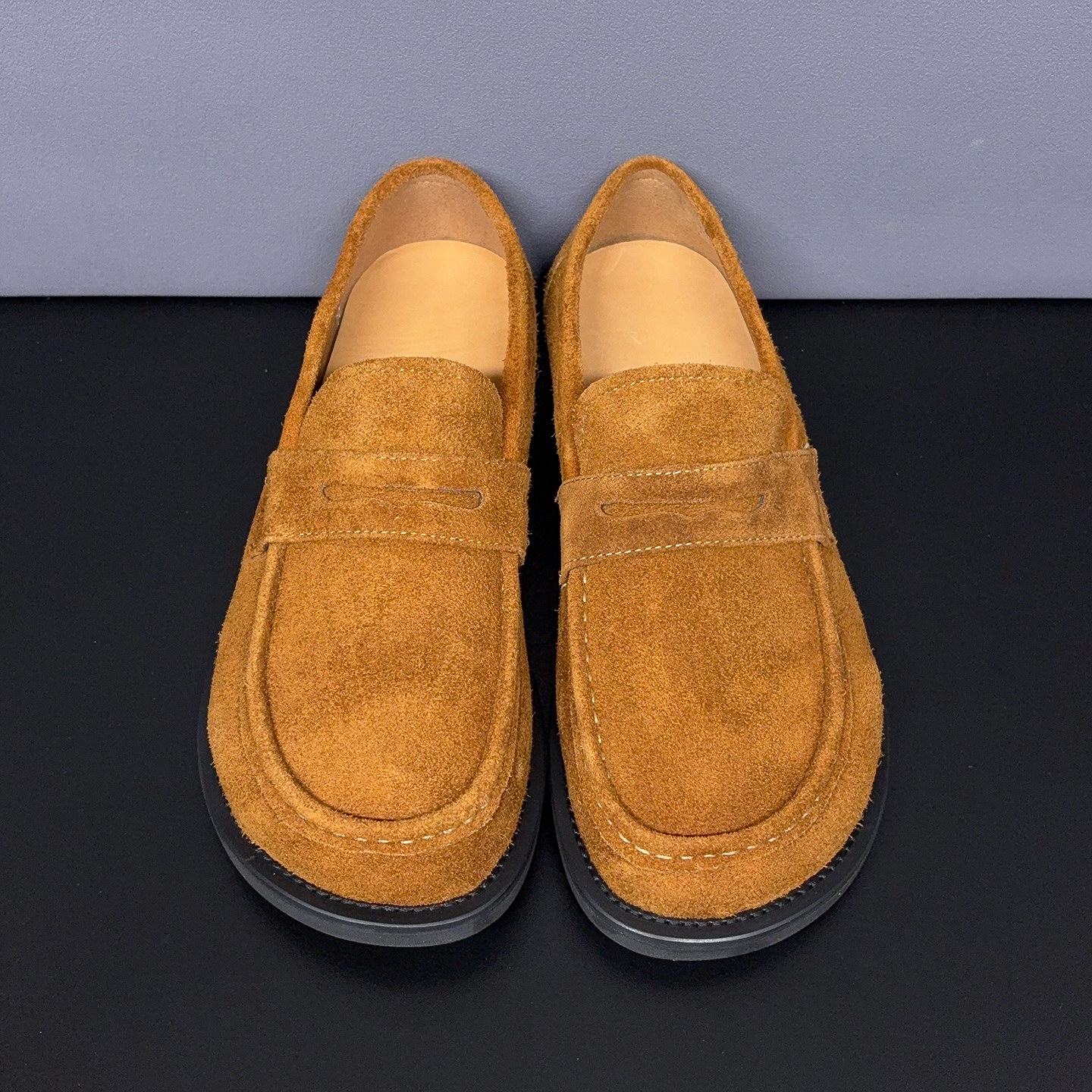英伦复古反绒皮乐福鞋男休闲男鞋一脚蹬豆豆鞋懒人鞋宽头大头皮鞋