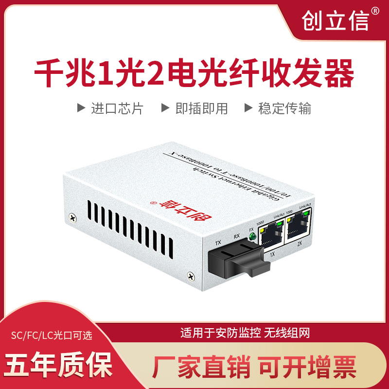 创立信 千兆1光2电单模单纤光纤收发器SC/FC/LC多模双纤转换器一光两电单模双纤网络交换机1台价格