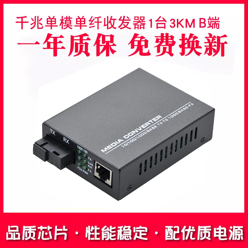 千兆光纤收发器单模单纤百兆光纤收发器一对SC光纤线转网线接口转换器网络视频监控信号电源光纤光电转换器