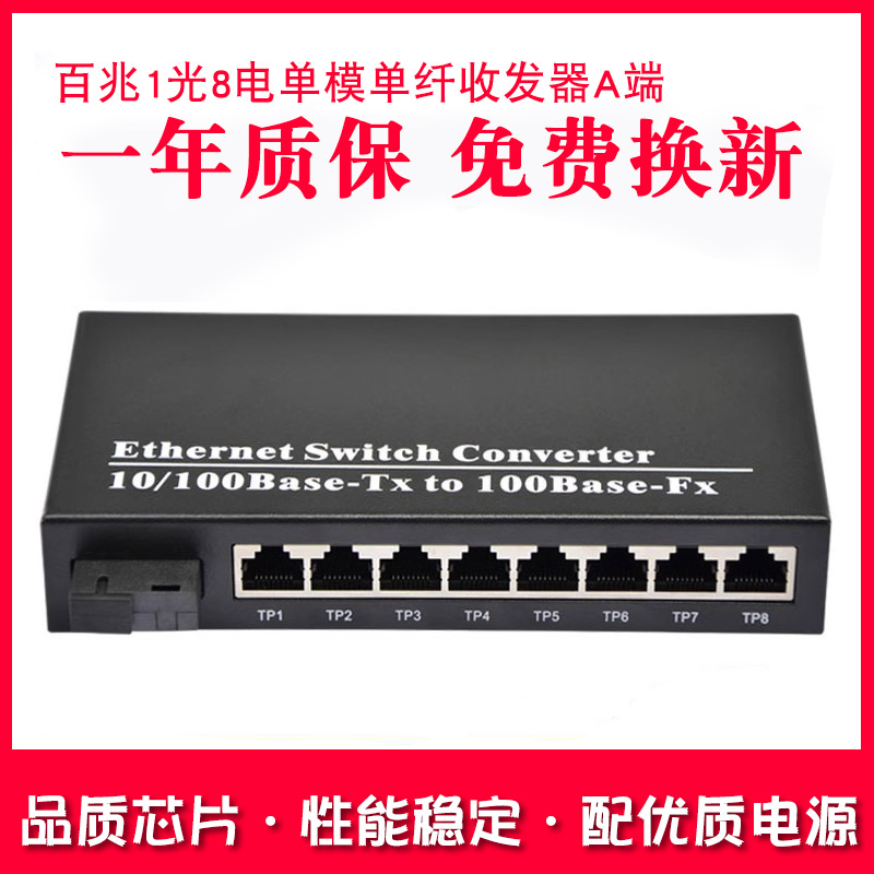 Haohanxin百兆1光8电单模单纤光纤收发器光电转换器A端单台