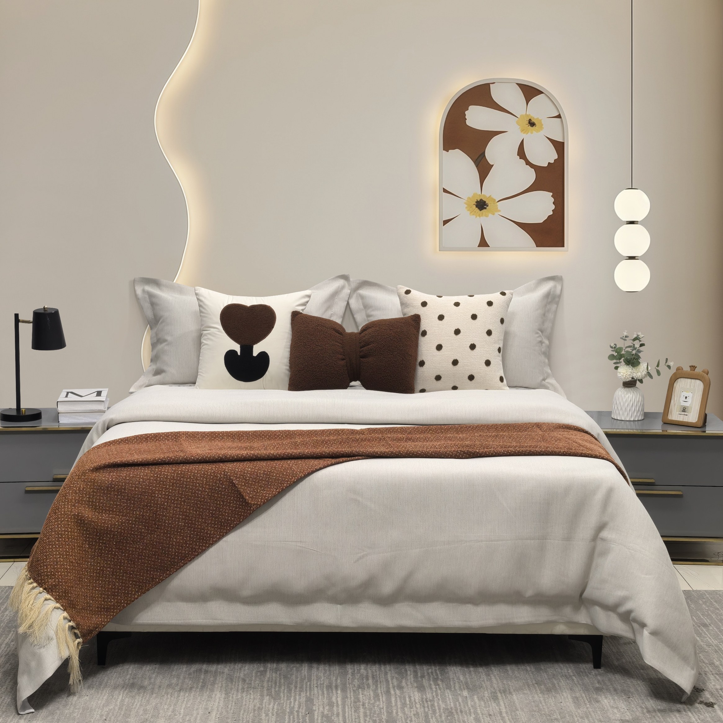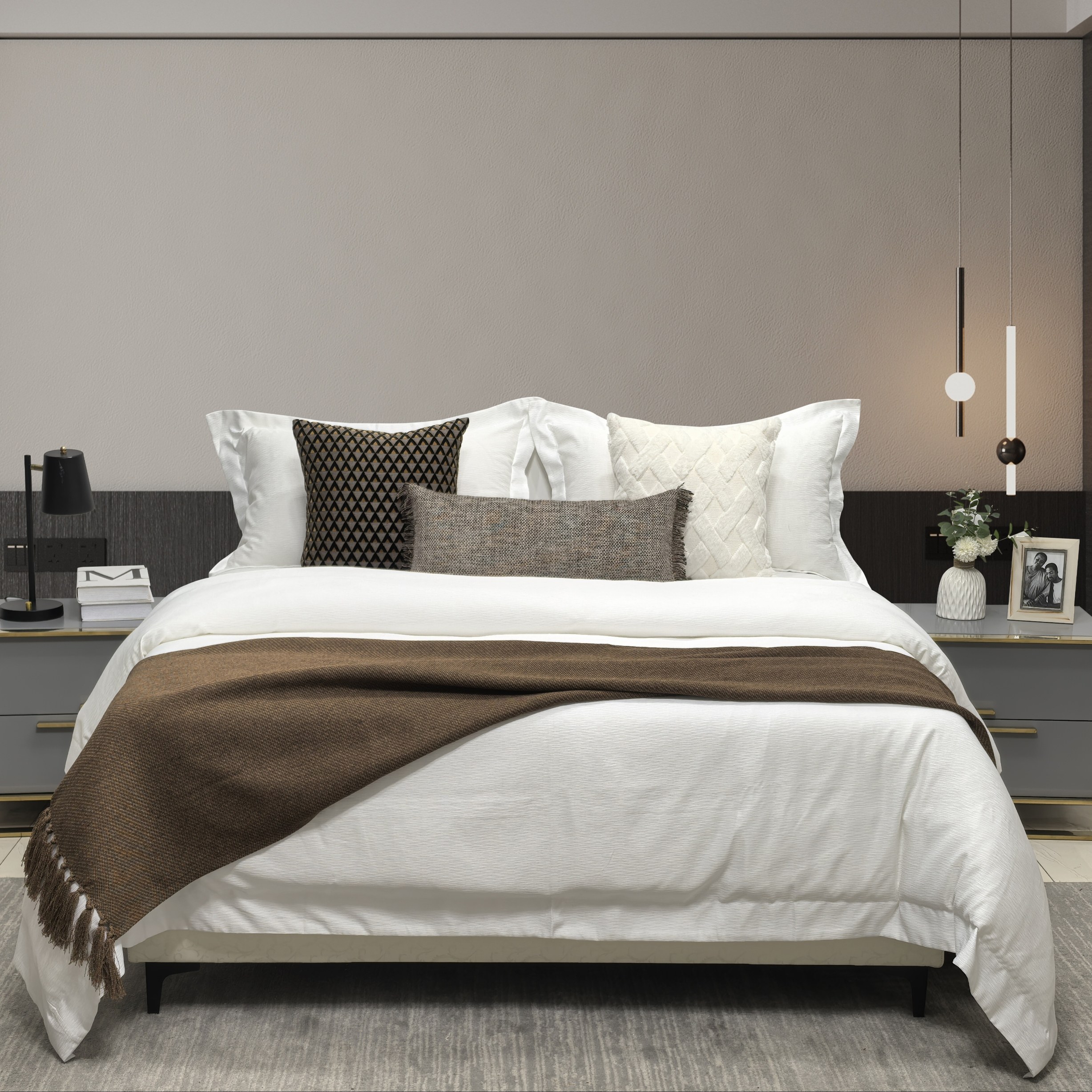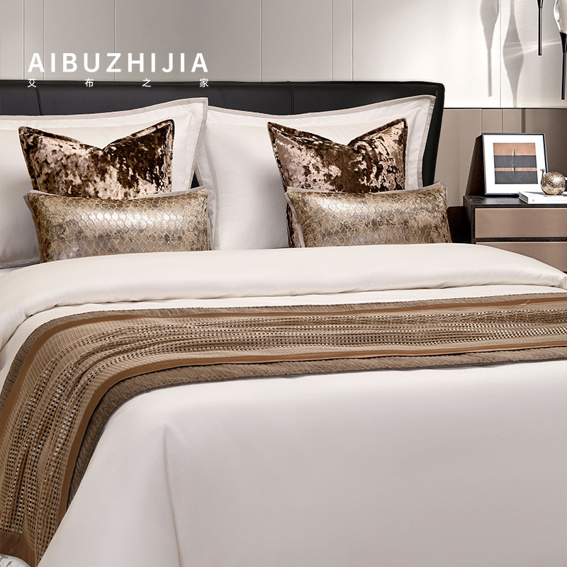 展厅样板间 家具配套床品 轻奢意式现代风 高端软装床品多件套 咖