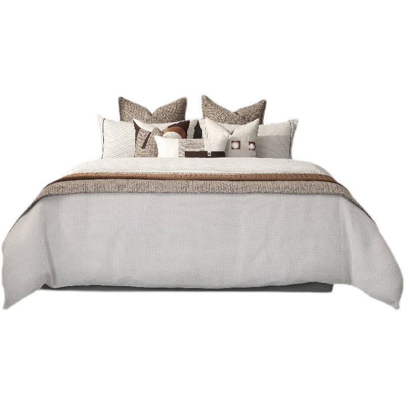 展厅样板间 家具配套床品 轻奢意式侘寂风 高端软装床品多件套 咖