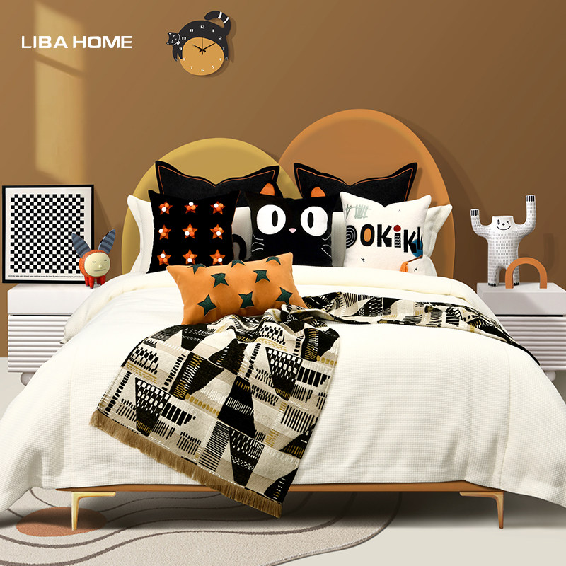 软装样板间女孩房抱枕魔女宅急便黑色床品四件套床头靠垫儿童抱枕
