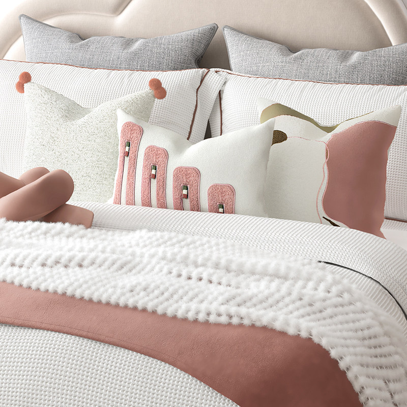 样板间 家具展厅配套床品多件套 现代简约北欧侘寂风套装软装用品