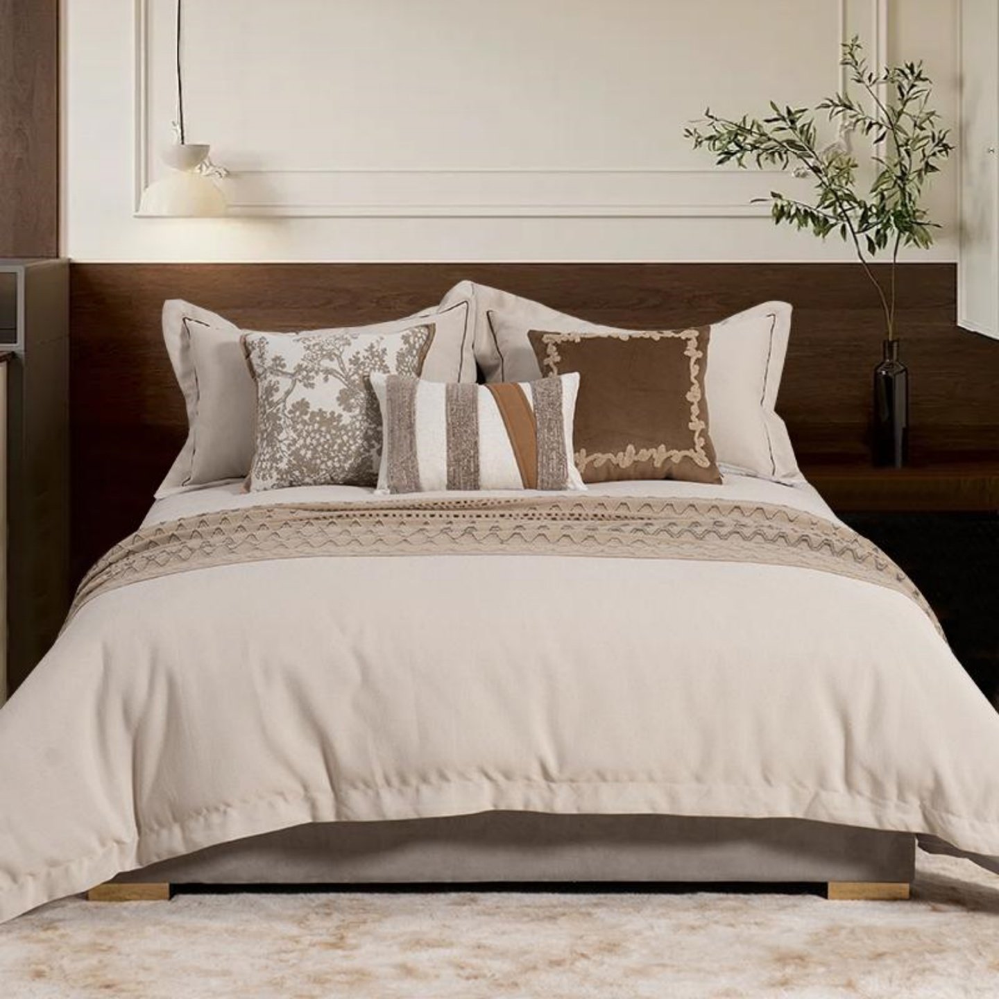 展厅样板间 家具配套床品 奶油日式侘寂风 高端软装床品多件套 米