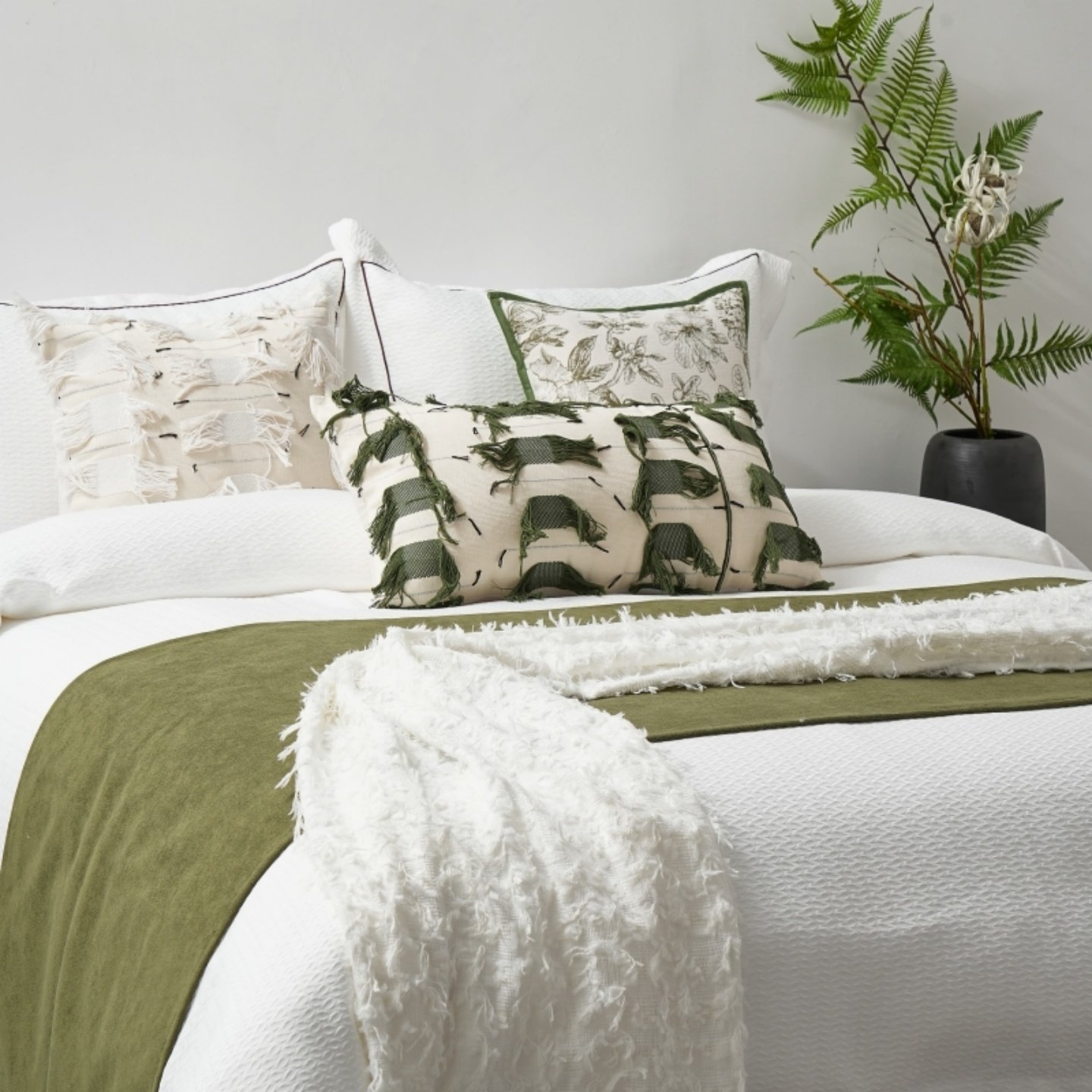 轻奢酒店样板间床品家居软装绿色侘寂风床上用品套件搭毯抱枕定制