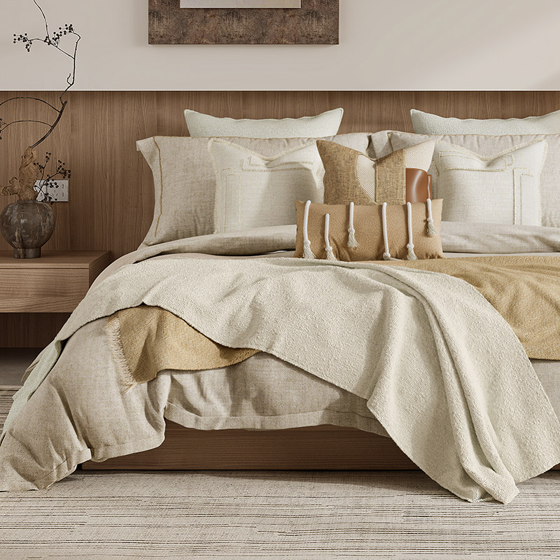 展厅样板间 家具配套床品 奶油风 侘寂风 中古风软体软装床上用品