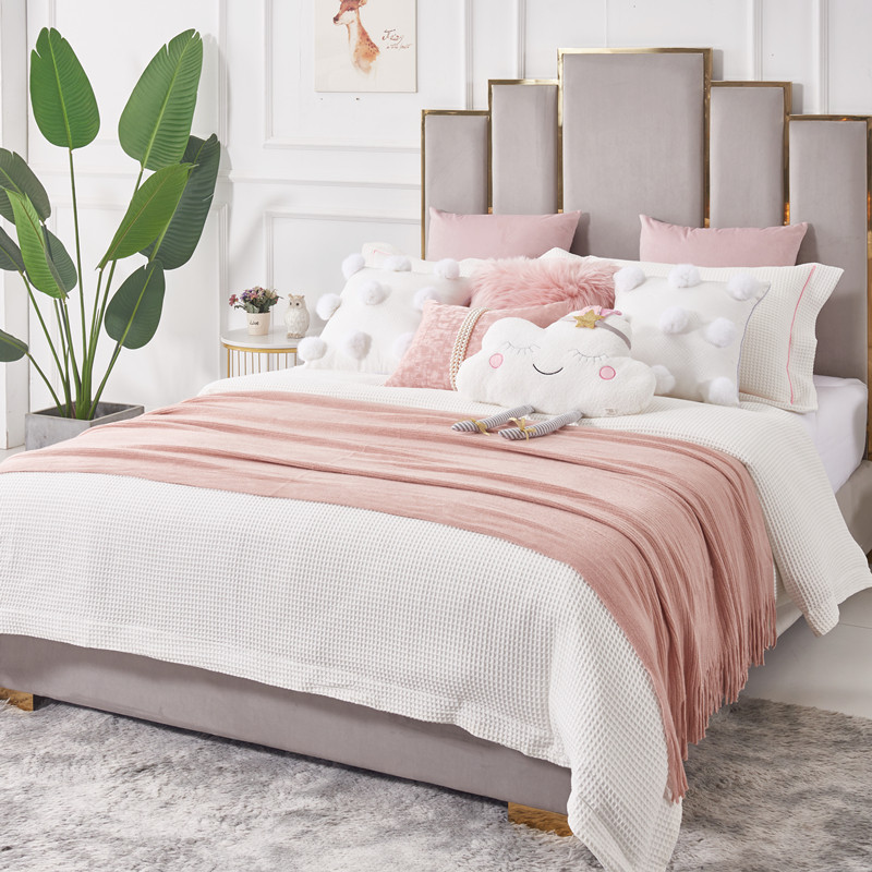 展厅样板间 家具配套床品 儿童房女孩可爱床上用品 毛球粉色白云