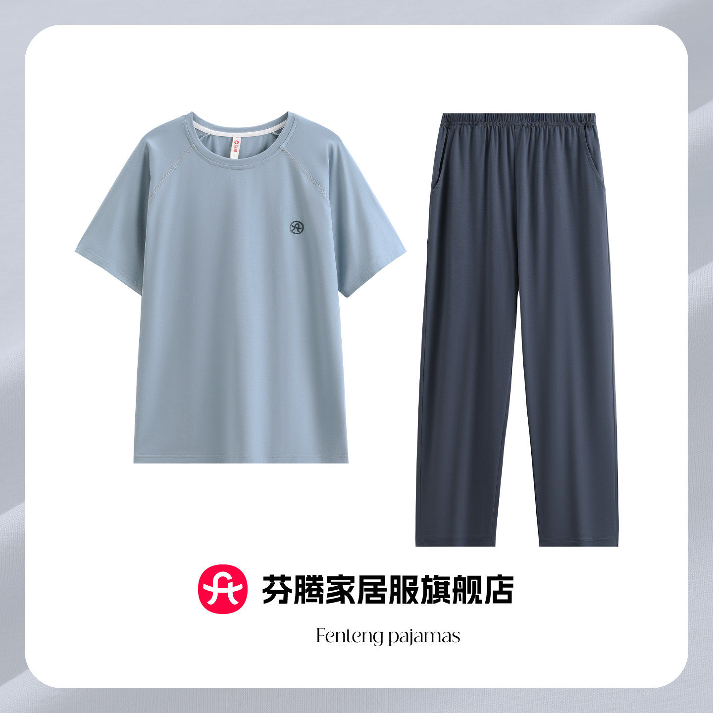芬腾男士睡衣纯棉短袖长裤夏季薄款可外穿圆领青年男生家居服套装