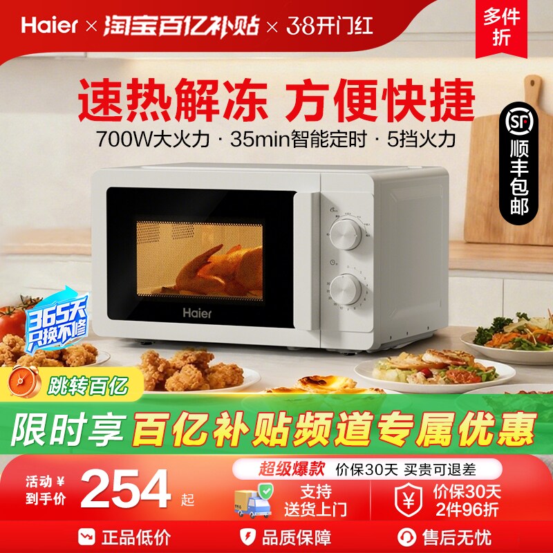 海尔微波炉家用小型新款旋转加热大火力解冻迷你多功能机械式正品