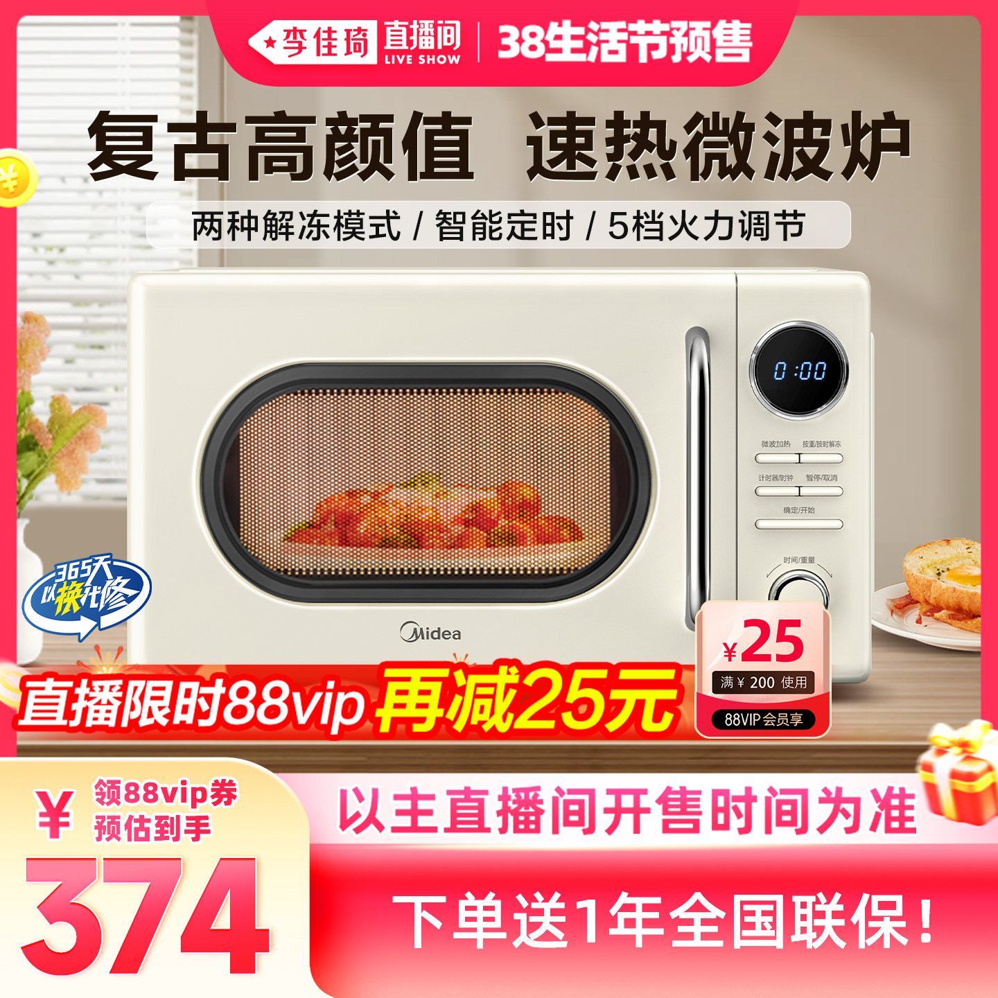 【李佳琦直播间生活节】美的微波炉家用复古奶油白小型正品M2F
