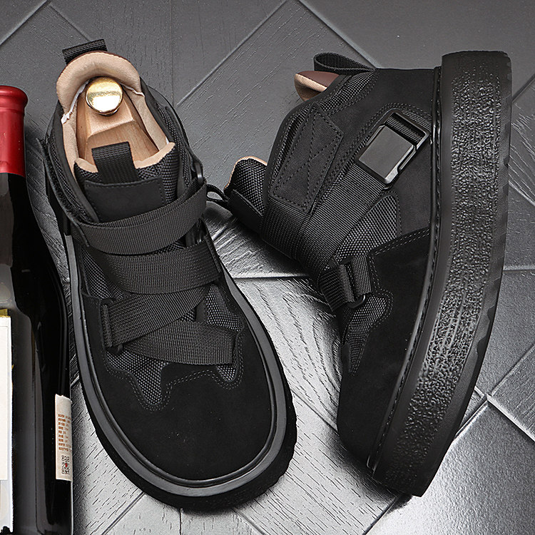 韩版时尚高帮休闲鞋男潮流个性磨砂皮男士短靴秋冬复古增高男鞋子