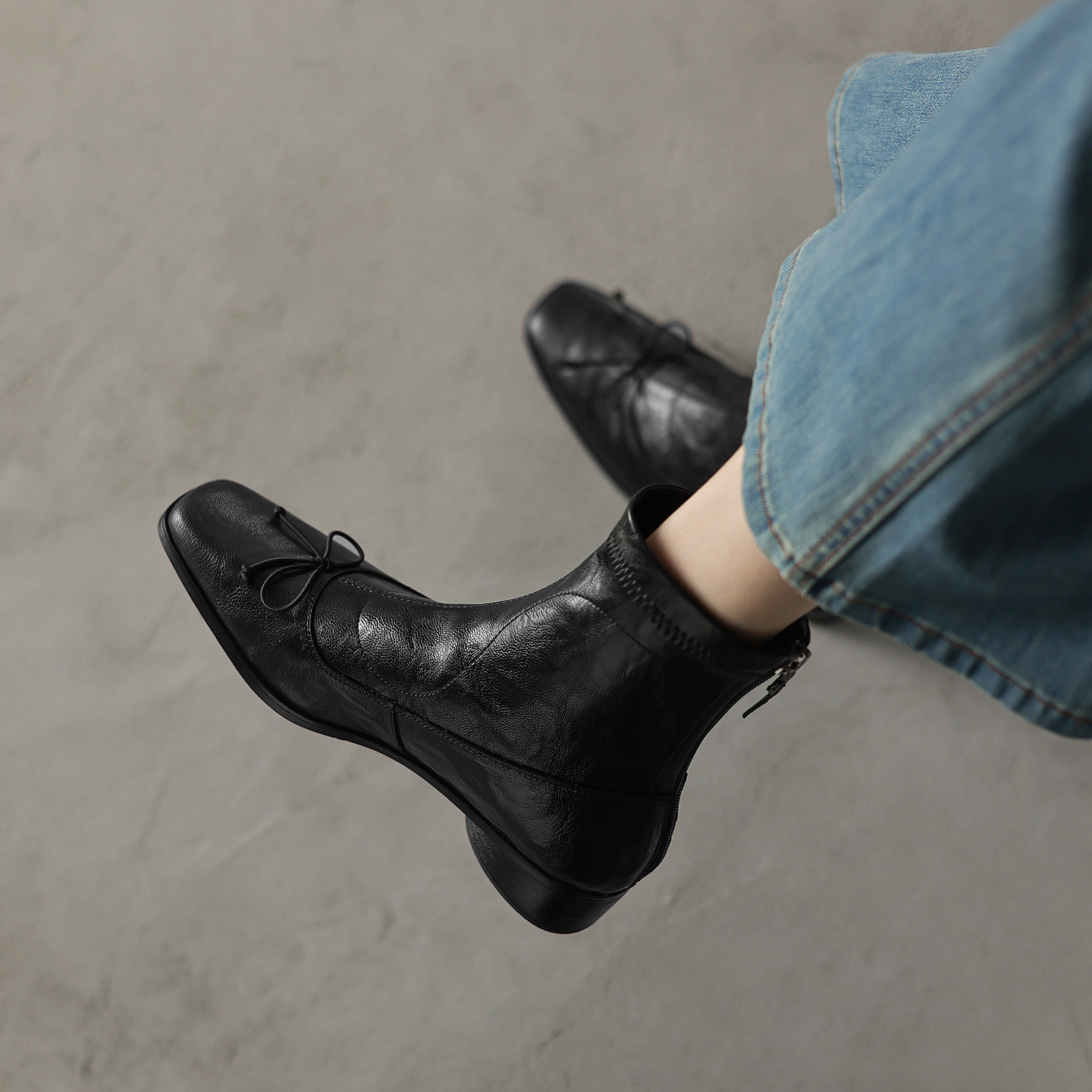 - 真皮低跟女靴