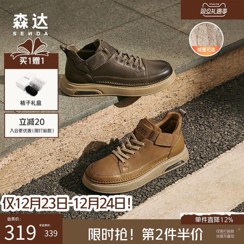 森达男鞋工装短靴秋冬商场款休闲复古潮流靴加绒保暖低帮鞋V3045D