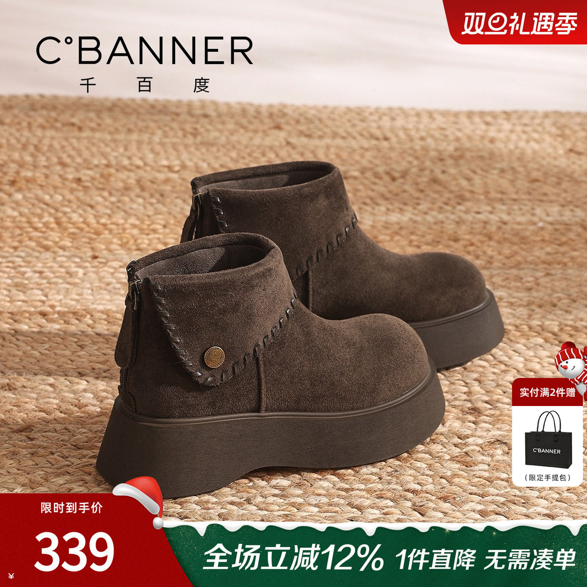 - 雪地靴加绒女短靴