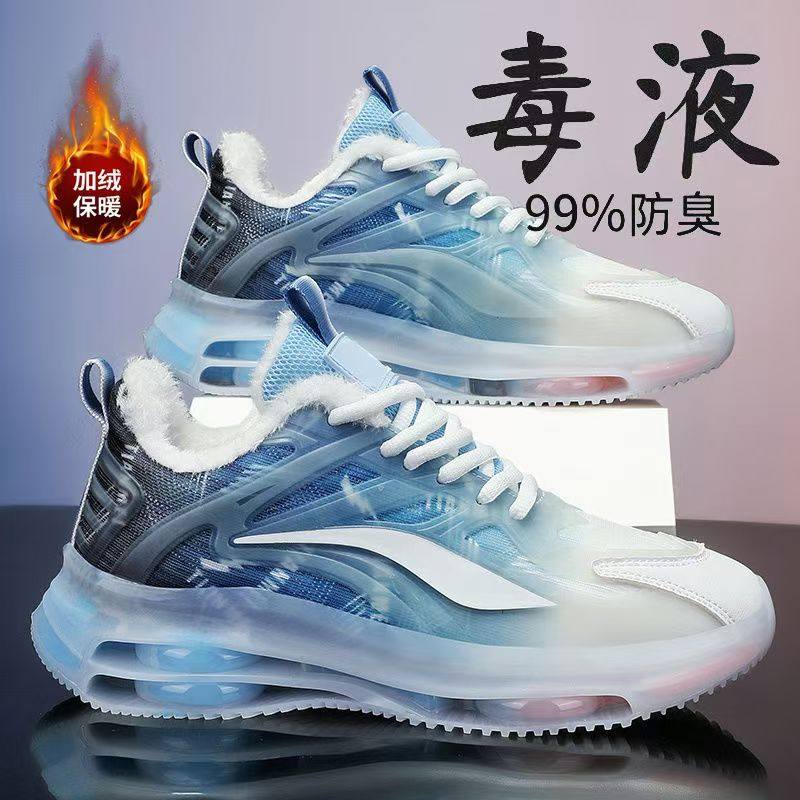 增高冬季运动鞋加绒2024加厚男鞋全掌气垫新款运动休闲跑步老爹鞋