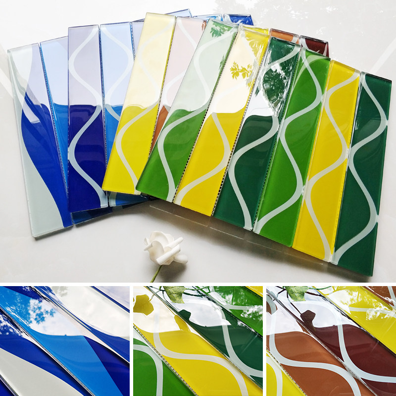 现代草绿水晶长条玻璃马赛克电视背景墙贴客厅卫生间瓷砖吧台装饰