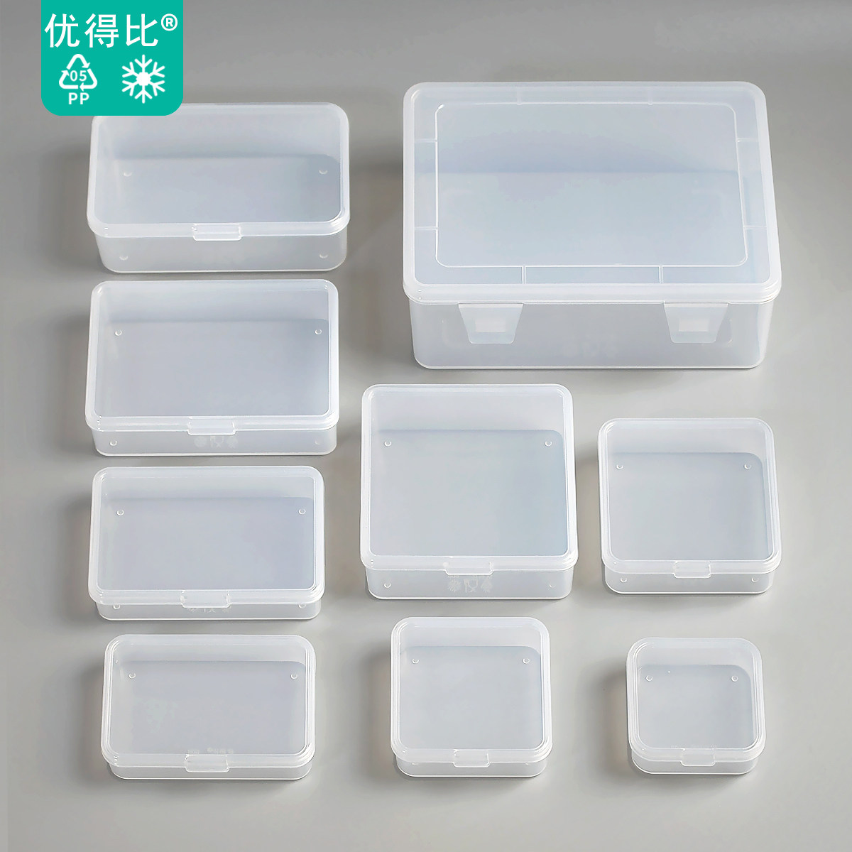 优得比收纳盒小零件迷你样品整理透明塑料盒正长方形带翻盖PP材质
