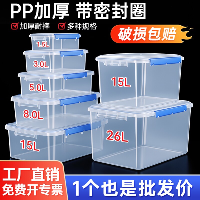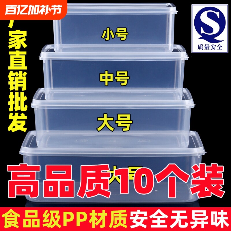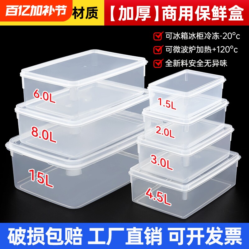 保食品鲜盒加厚透明塑料密封盒收纳盒商用带盖保鲜冰箱冷冻长方形