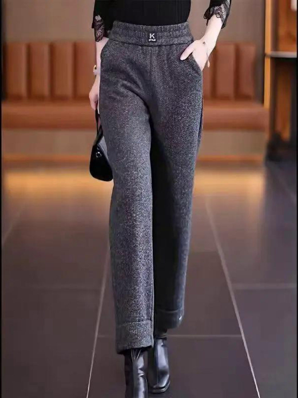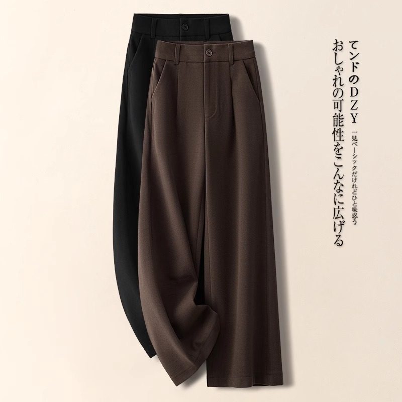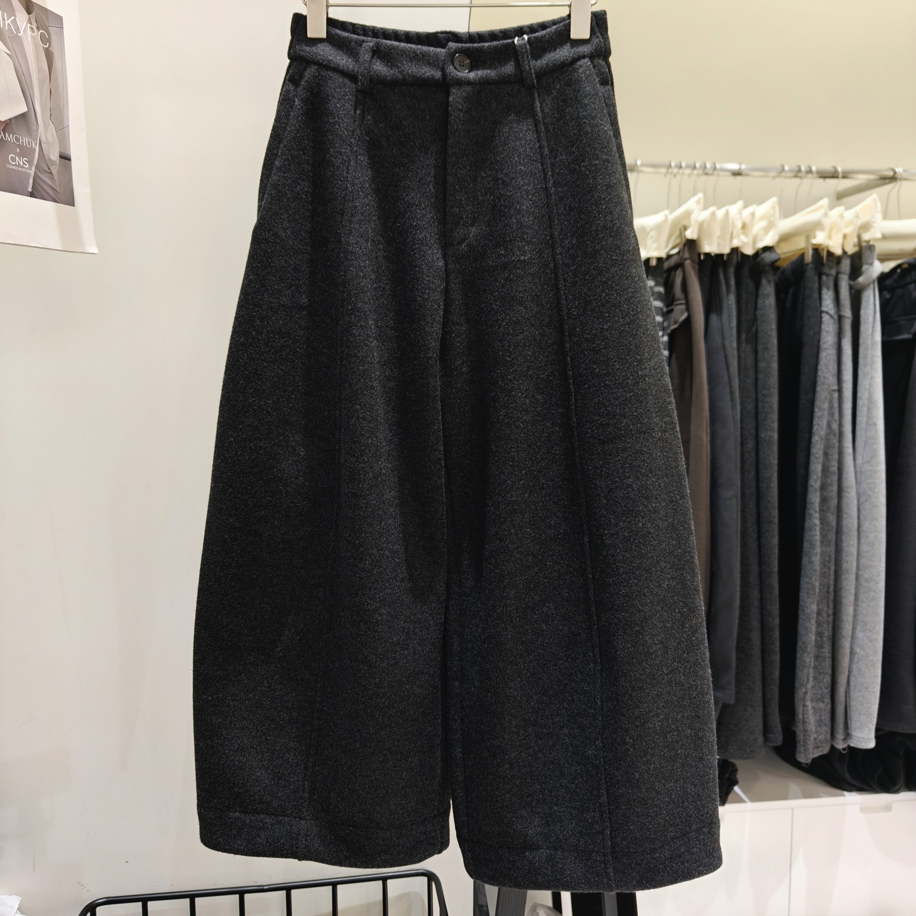 逸阳显瘦九分加绒阔腿裤2025年冬季遮肉显瘦羊毛呢宽松直筒裤通勤