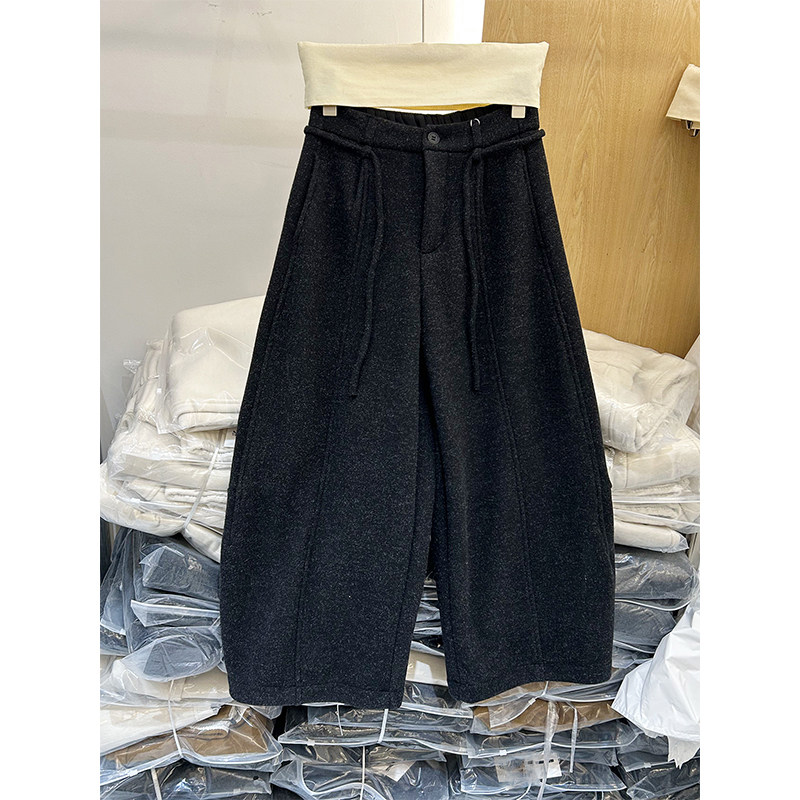 2025秋冬新款加绒毛呢花边休闲裤小众设计松弛感宽松阔腿九分裤女