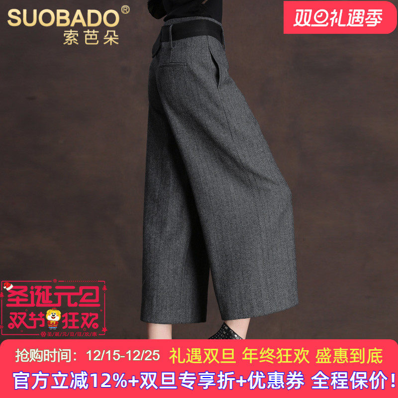 双面呢阔腿裤羊毛呢子时尚九分裤女休闲宽松加厚直筒高腰显瘦西裤