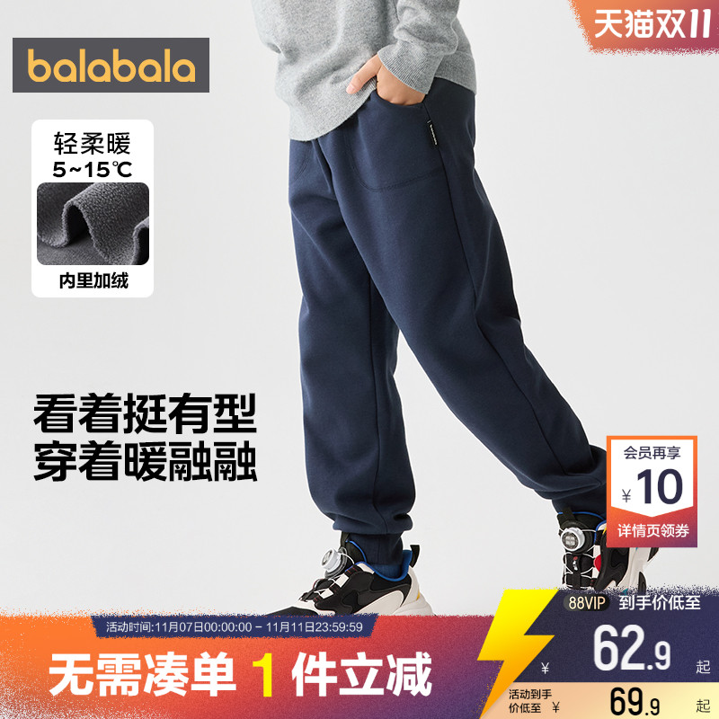 巴拉巴拉儿童加绒裤子男童女童运动裤秋冬季新款宝宝外穿加厚长裤