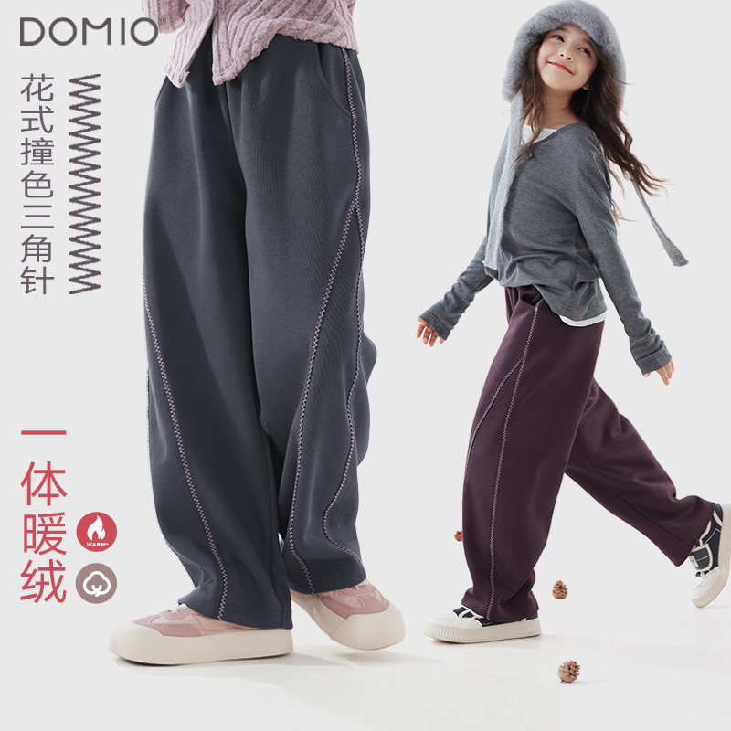 DOMIO女童弯刀裤子秋冬儿童休闲裤运动裤中大童冬季加绒加厚洋气