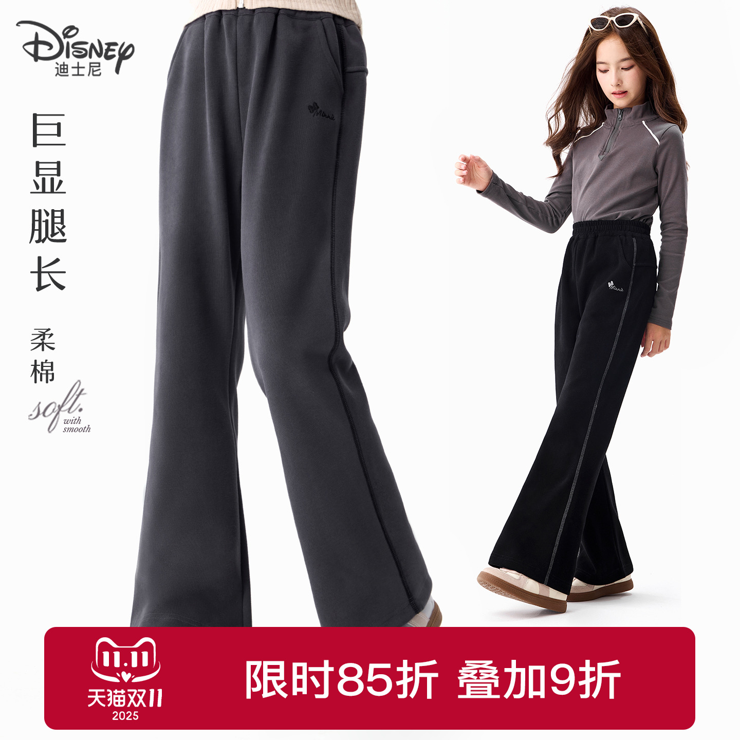迪士尼女童裤子秋冬季新款儿童微喇叭裤一体绒加厚大童运动休闲裤