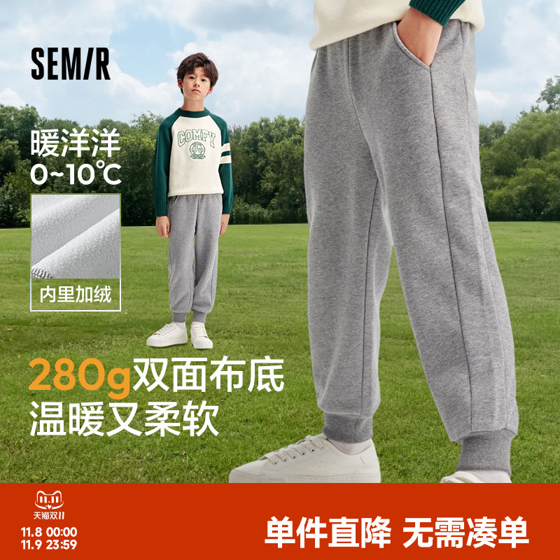 森马儿童加绒裤子秋冬加厚保暖基础休闲裤男童女童运动束脚长裤潮