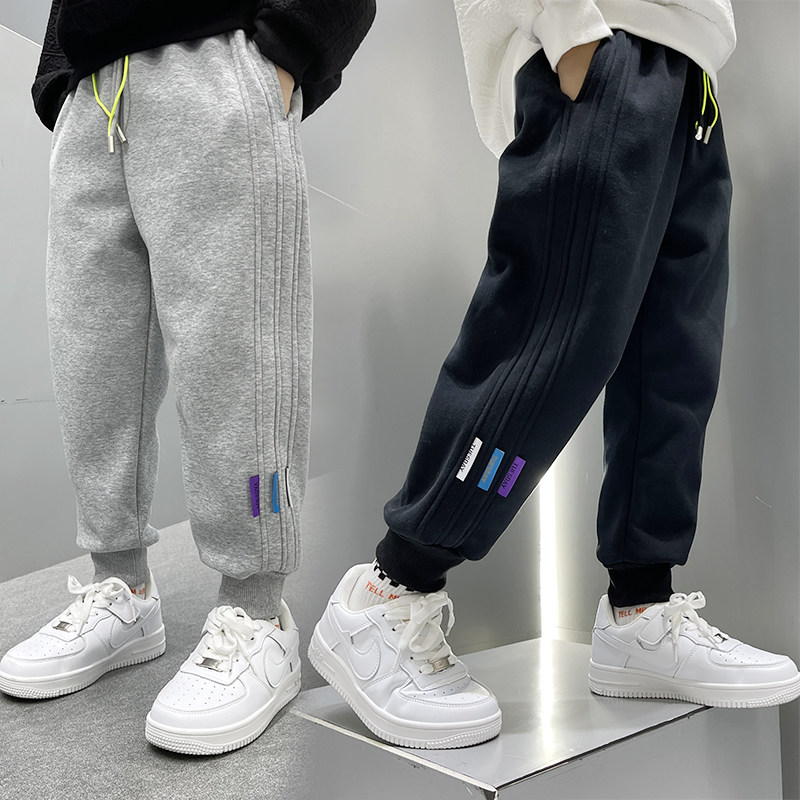 女童加绒裤子秋冬儿童加厚2026新年男童运动束腿卫裤宝宝保暖长裤