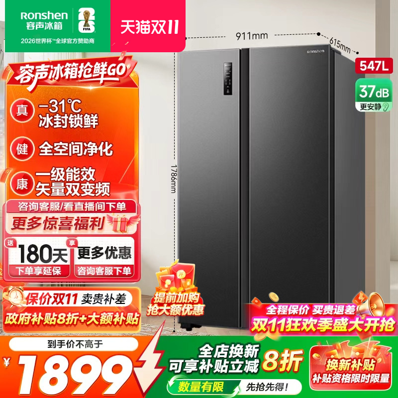 容声547L双开门对开门家用一级能效风冷无霜嵌入冰箱以旧换新补贴