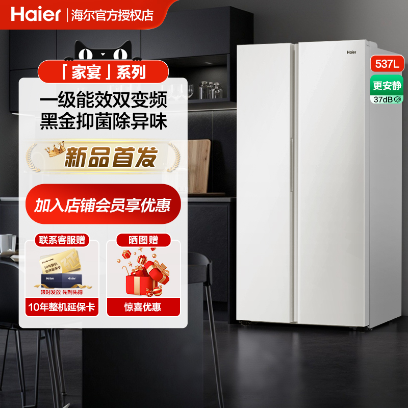 海尔537L对开门双门大容量电冰箱家用一级能效风冷无霜官方旗舰店