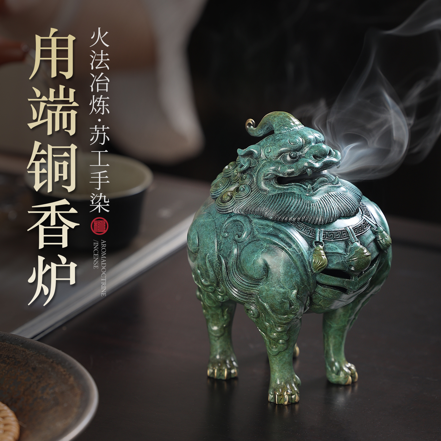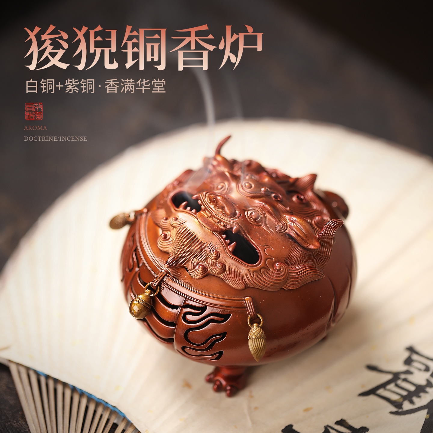 狻猊香炉仿古紫铜香炉纯铜香薰炉铜香炉高级感熏香炉创意茶道摆件