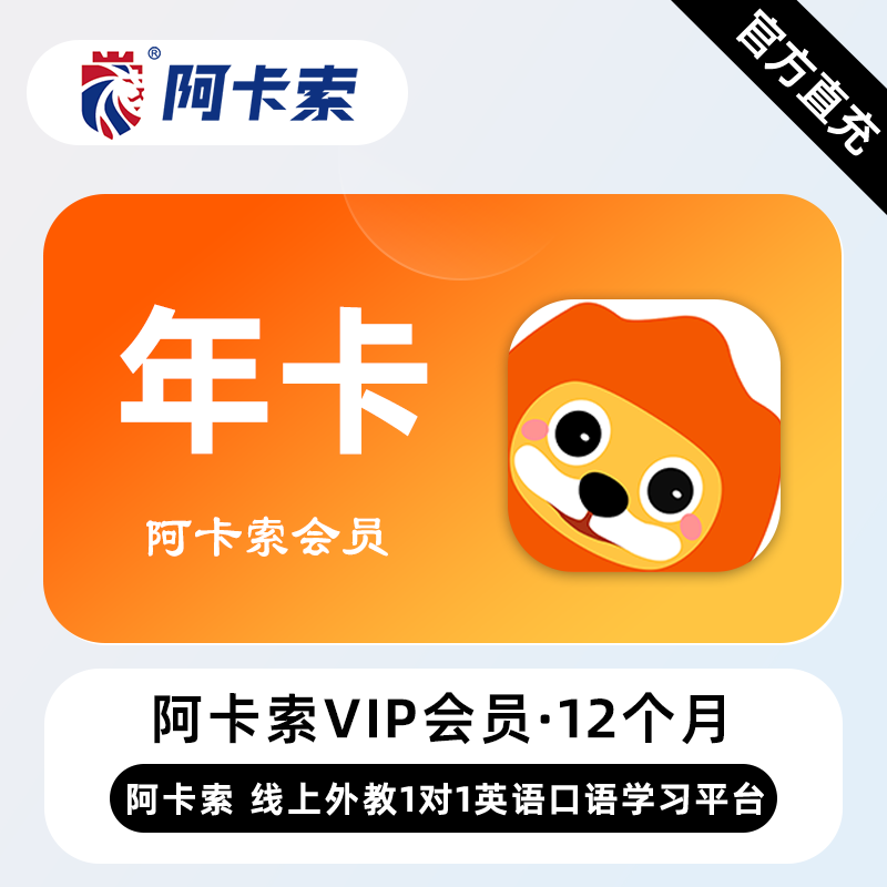 【直充】阿卡索VIP会员12个月 年卡 线上外教1对1英语口语学习