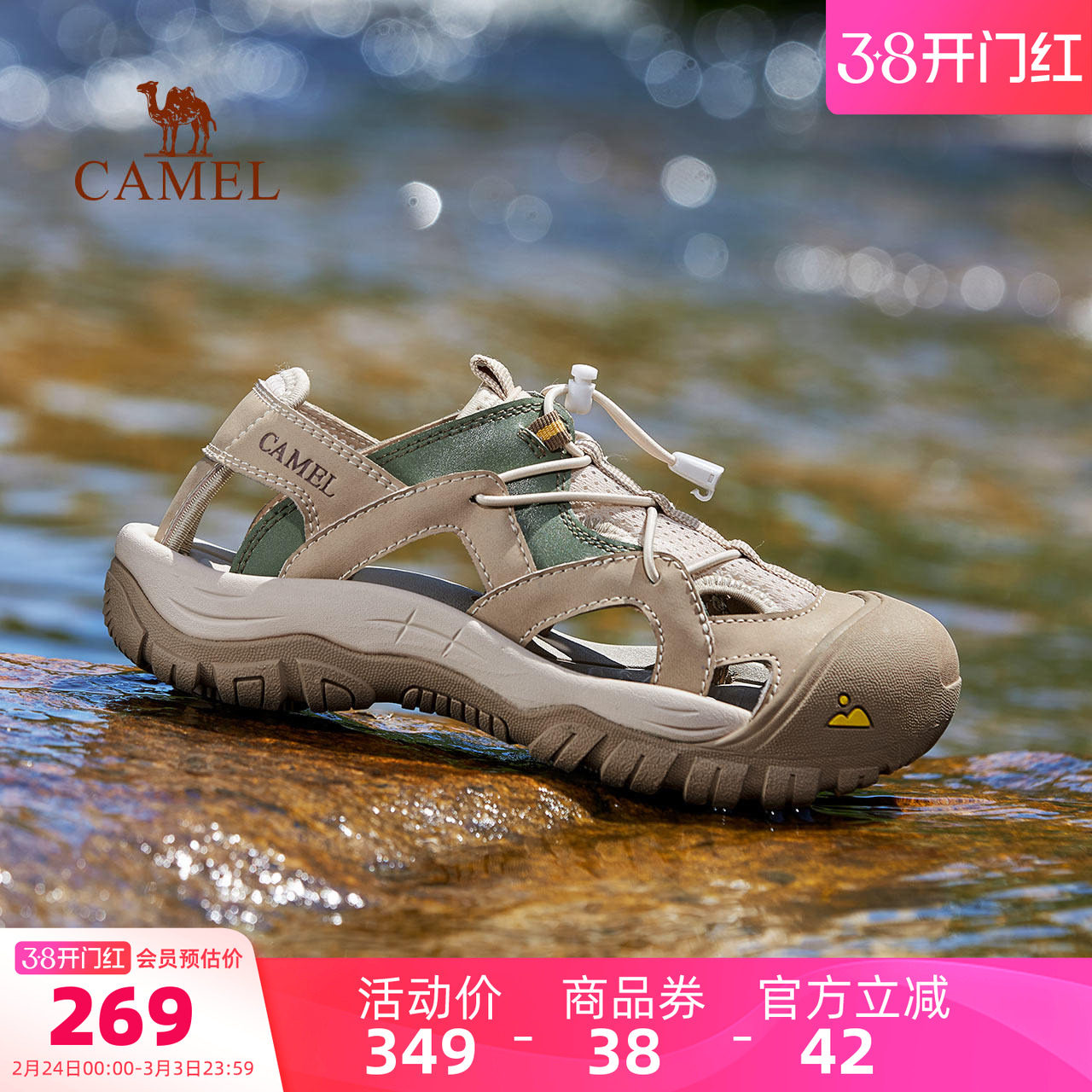 骆驼男鞋2026夏季新款透气网布镂空厚底女户外休闲凉鞋男士沙滩鞋