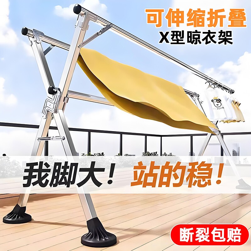 不锈钢晾衣架落地折叠室内外晒衣架双杆阳台挂衣架X型伸缩晾衣杆