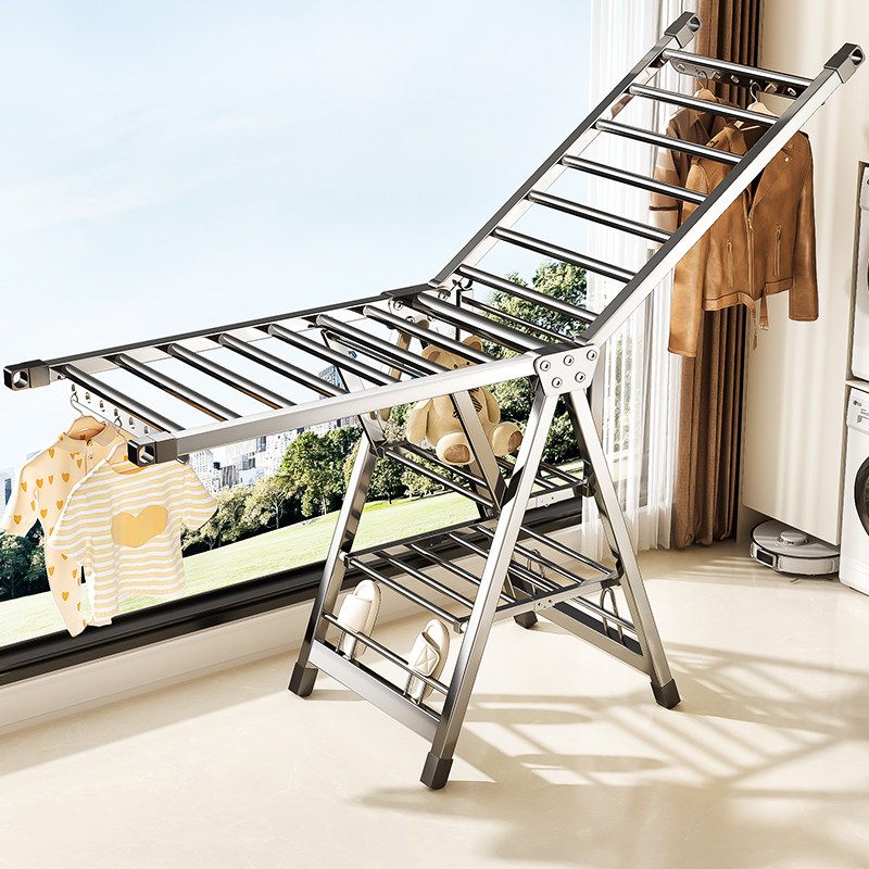 SHESHOME晾衣架落地折叠多功能家用室内不锈钢衣架阳台婴儿晒衣架