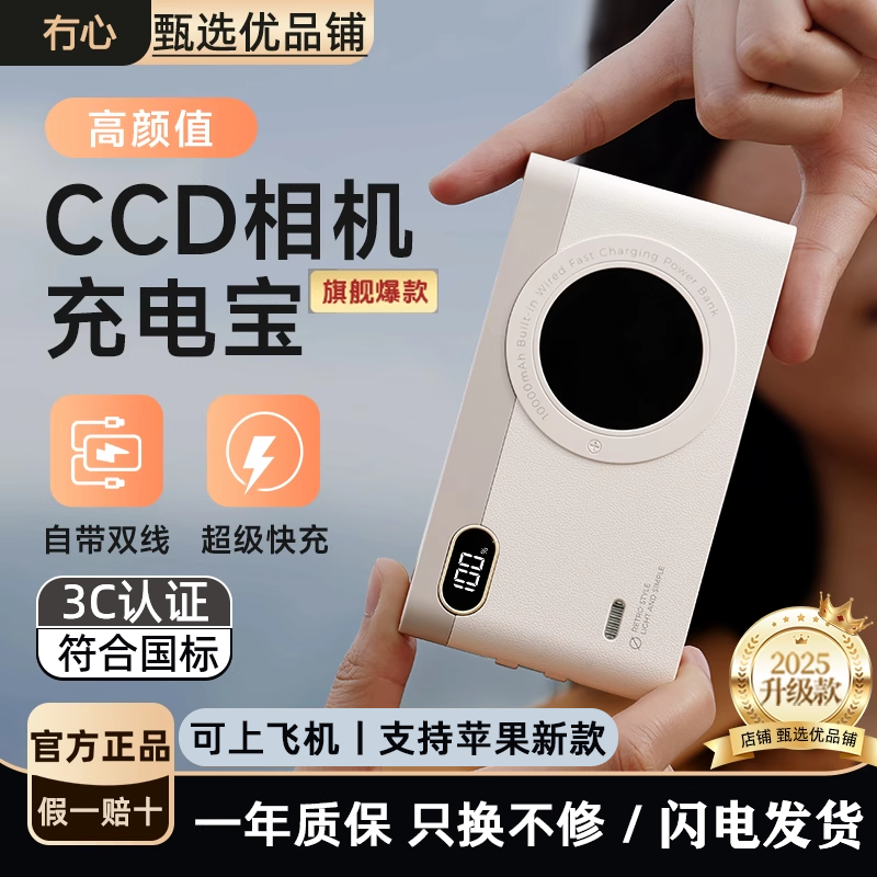 冇心CCD3代充电宝3C认证丨自带双线快充复古创意移动电源可上飞机
