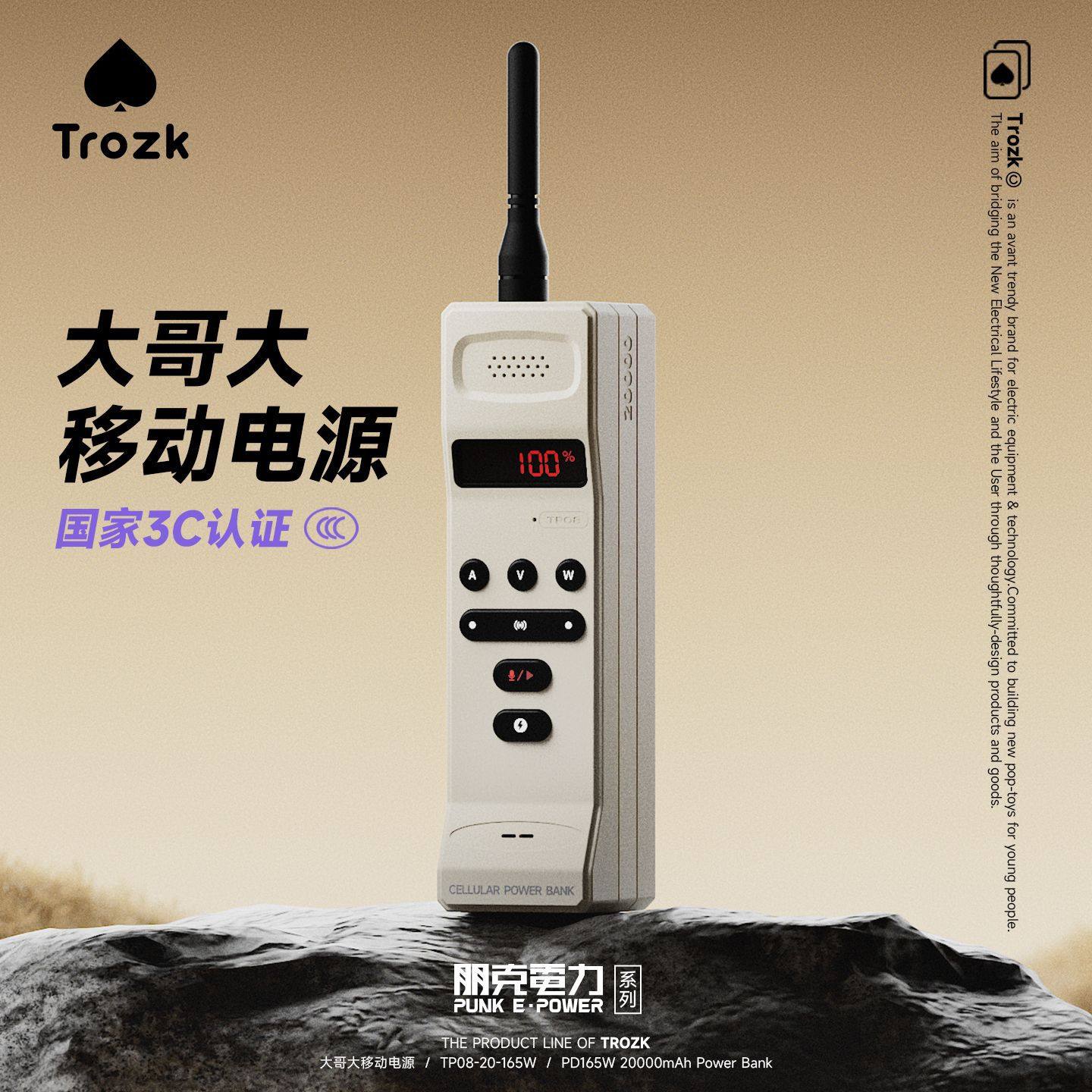 特洛克大哥大复古创意充电宝20000毫安大容量手机快充黑科技礼物