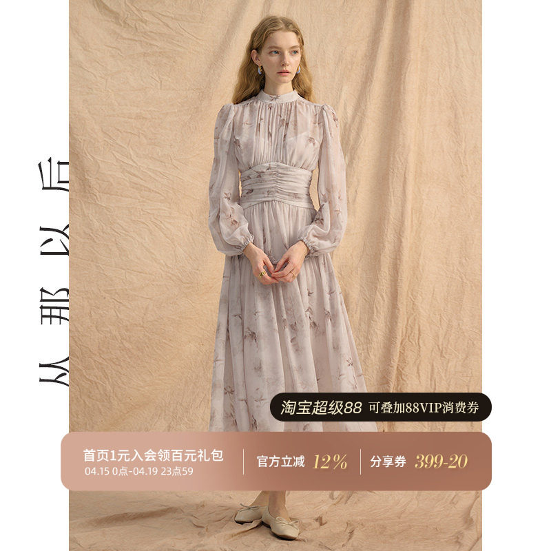 从那以后法式高级感连衣裙雪纺复古碎花裙长袖气质长裙收腰裙子女
